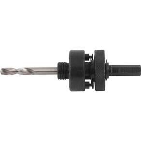 Possibilita o travamento firme da serra, eliminando vibrações, e também acompanha a broca piloto para perfurar o material, centralizando o corte e evitando que a serra copo deslize