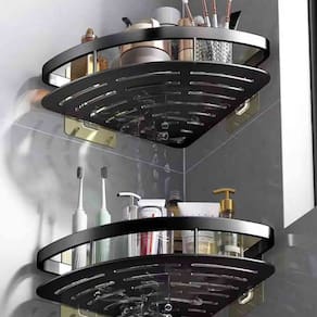 O design inteligente do suporte inclui múltiplos compartimentos para armazenar shampoos, condicionadores, sabonetes líquidos e outros produtos de cuidado pessoal, garantindo que tudo fique organizado e acessível. A instalação é descomplicada, com opções para fixação com parafusos ou adesivos (acompanha apenas parafusos), permitindo uma montagem segura sem danificar as paredes. Com linhas modernas e um acabamento premium, o Suporte de Canto adiciona um toque de classe ao seu espaço.