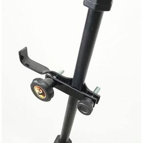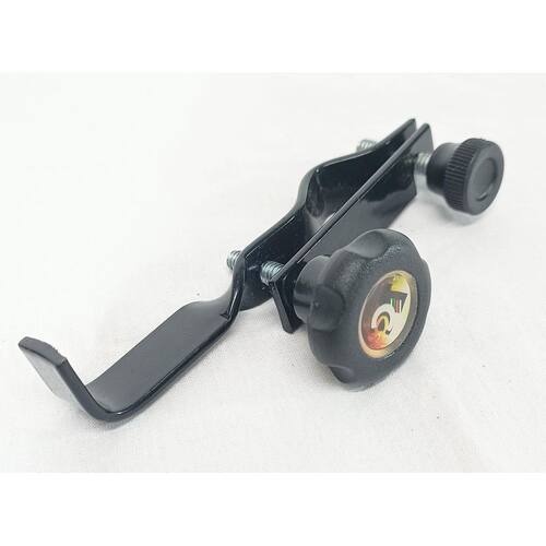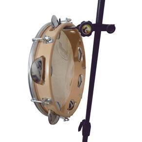Suporte simples de pandeiro todo fabricado em metal de alta resistência, pintura epóxi e de simples instalação desenvolvido por JC suportes para acoplar em pedestal de microfone padrão, compacto medindo somente 14x6x6 cm e pesando 110g na cor preta, sendo transportado facilmente até no bolso.