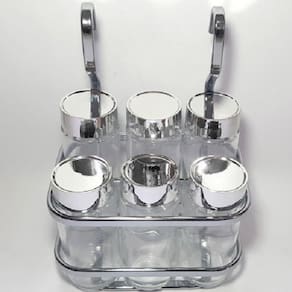 Suporte para temperos que vai deixar sua cozinha linda e Prática. Este suporte tem dois níveis para melhor visualização dos vidros de porta temperos, que são 6, fabricados em vidro, com tampa de fechamento em plástico pintado de cromado. Vai liberar espaço na bancada, facilitar sua vida e deixar tudo sempre lindo e à mão. Essa linha vem com uma proposta de fixar barras nas pares da cozinha e pendurar os suportes e organizadores, para ter mais praticidade e organização. Coordene este suporte com outros acessórios e tamanhos de barra para uma cozinha organizada e com muito espaço. Contém 1 suporte para encaixe em barra de cozinha. As barras e demais itens são ilustrativos e devem ser adquiridos separadamente. Especificações Material: Aço Cromado Material Potes: Vidro Transparente Material Tampas: Plástico ABS Cromado Vidro com capacidade para até 60ml Suporte que pode ser colocado em uma barra Medidas (CxLxA): 14 x 15 x 20 cm Tecnologia Rust Free Consiste em uma camada extra de protetivo especial aplicado sobre as peças cromadas, resultando em uma resistência muito maior contra ferrugem. Informações Adicionais Valor referente a 06 potes de vidro 90 ml, 06 tampas e 01 suporte em aço cromado Não acompanha barra Conteúdo na embalagem 06 potes de vidro 90 ml, 06 tampas e 01 suporte em aço cromado