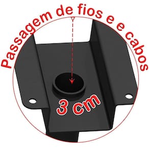 - Furação (VESA=mm): 600x400; 400x400; 400x200; 400x100; 300x400; 300x200; 300x100; 210; 200x200; 200x100; 100x100 ou 75x75