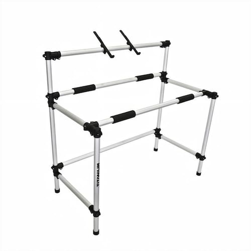 É um rackfabricado em alumínio, o que o torna leve para transporte,totalmente desmontável e resistente para suportar aparelhos pesados. Totamente ajustávelpodendo acomodar e adequar o seu equipamento da melhor forma e posição para sua performance de trabalho.