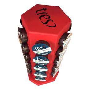 Suporte Torre P/30 Capsulas Três Corações Giratorio Cor Vermelho O suporte torre giratório p/30 cápsulas 3 três corações é perfeito para organizar suas cápsulas de café de forma prática e elegante. Com capacidade para 30 cápsulas compatíveis com a marca três corações, você terá sempre suas opções favoritas ao alcance das mãos. Com altura de 30 cm e comprimento e largura de 14 cm, este suporte é compacto e se encaixa facilmente em qualquer espaço da sua cozinha. Feito em mdf de alta qualidade, o suporte é resistente e durável. Além disso, sua característica giratória permite um acesso fácil e rápido às cápsulas.