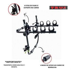 -? ?Capacidade: Transporta 3 bikes (2 adultas e 1 infantil)