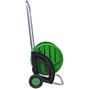 O Enrolador de Mangueira da Trapp possui rodas e funciona como um carrinho para enrolar mangueira de jardim. Possui manivela lateral para enrolar e desenrolar e é capaz de acondicionar até 50 metros de mangueira.