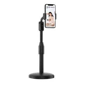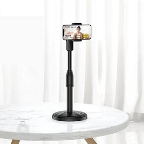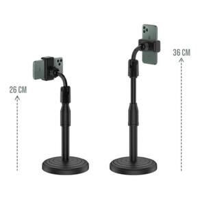 Base de disco com peso embutido, ajuste de altura, inclinação de 180 graus, rotação de 360 graus, suporte para uso horizontal e vertical da tela.Uso