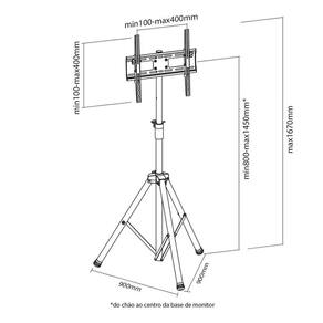 Tripé para TV tipo Suporte Pedestal com Altura Regulável de 80 a 145cm para TVs de 32 a 55 polegadas Preto modelo CTP400