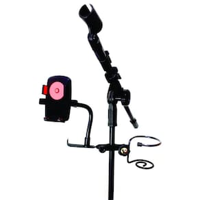 Suporte Triplo De Celular, Líquidos E PandeiroSuporte triplo de celular, copo e pandeiro, todo fabricado em metal de alta resistência, pintura epóxi e de simples instalação desenvolvido por JC suportes para ser acoplado em pedestais de microfone padrão, compacto medindo somente 29x10x10 cm e pesando 312g na cor preto fosco, sendo transportado facilmente, contém um recipiente para colocar seu copo, garrafinha de água, taça de bebidas etc. Vai facilitar muito nos seus shows, festas e rodas de samba, o reservatório para copos tem o aro superior ajustável para se adaptar a diversos tipos de recipientes e conta também com um suporte para o seu celular que tem uma haste flexível de fácil manipulação, acompanha manual de instruções. Marca: Jc Suportes