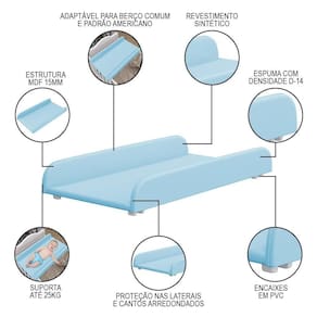 Nem sempre é fácil encontrar um espaço adequado e confortável para trocar as fraldas do seu bebê, não é mesmo? Então conheça o Suporte Trocador para Berço Americano Cloud Sintético Azul, da Phoenix Baby, uma superfície macia, segura, higiênica e que cabe no quarto do seu pequeno.