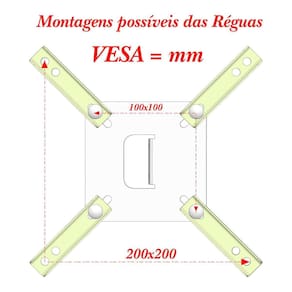 Observações importantes: - verifique se a superfície de instalação apresenta resistência suficiente para uma instalação segura. - o suporte só segura a tv, não resolve problemas de paredes fracas ou arenosas - confirme se os vesa atendem a furação do gabinete da sua tv - fique atento a carga máxima indicada para o suporte - aconselhamos que a instalação seja realizada por um profissional da área Ean: 7898718280264