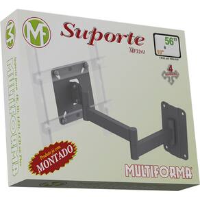 As novas telas de TV Plasma, LED, LCD, OLED, 4K ou Tela Curva estão cada vez mais finas e elegantes. Os suportes não poderiam deixar de acompanhar esta tendência. Assim a Multiforma, lançou o suporte de TV MF3241, com 4 movimentos, 3 giros horizontais de 180 graus e uma inclinação frontal de 15 graus Um suporte para telas de 10 a 56 polegadas, com furação VESA 400x400 mm, 300x200, 210, 200x200, 200x100, 100x100 e 75x75 mm Com seu inovador sistema Modula Fácil, o suporte já vem montado, exigindo o mínimo de ferramentas e parafusos para sua instalação. Nada de parafusos pesados ou compressão nos braços do suporte, dificultando os movimentos e criando inclinações indesejadas. A montagem versátil de seus prolongadores para o VESA ajustam-se perfeitamente a furação da TV, não deixando pontas aparentes e desnecessárias. O movimento Sanfona dos braços permite o perfeito alinhamento da TV em relação a fixação da base Este conjunto inovador possibilita que sua montagem e instalação seja feita por uma só pessoa, mesmo com pouco conhecimento ou prática neste assunto São produzidos em aço industrial e com pintura eletrostática na cor Preta, garantindo um acabamento elegante, discreto e muito seguro. Marca: Multiforma Mf