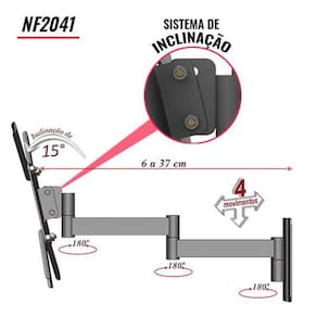 Distância da parede: 6 cm à 37 cm Articulado: sim, 4 movimentos de até 180º; Inclinação: frontal de 0º ou 15º;