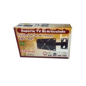 Anúncio: suporte TV Bi Articulado 10 à 55 Polegadas Cor: Preto Modelo: 1020 Marca: Lidimar Garantia de Fábrica: 05 anos (01 ano para Região Litorânea) Dimensões da Embalagem (A x L x P): 8 cm x 16 cm x 25 cm Peso da Embalagem: 1,85 kg Peso do Produto: 1,45 kg Itens por Caixa: 01 unidade Conteúdo da Embalagem: 01 base de parede, 01 braço, 01 articulação, 01 Base para TV, 04 Prolongadores e 01 kit de parafusos. Prazo de validade: Indeterminado
