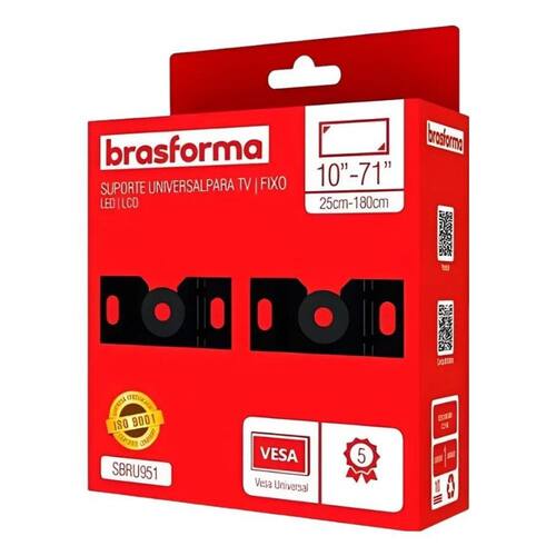 Descrição para o produto: suporte tv fixo led lcd brasforma sbru951 de 10 a 71 polegadas preto