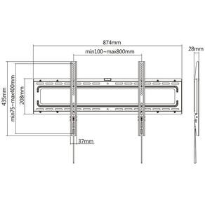 Indicado para TVs / Monitores LCD / LED / OLED / QLED / PLASMA / 3D a partir de 43 polegadas com até 75 kg e compatíveis com padrão de fixação VESA 100x100, 200x100, 200x200, 200x300, 300x200, 300x300, 400x200, 400x300, 400x400, 600x200, 600x400, 800x200, 800x400 ou 800x600 mm HxV , normalmente encontrado em televisores de 43 a 89 polegadas.