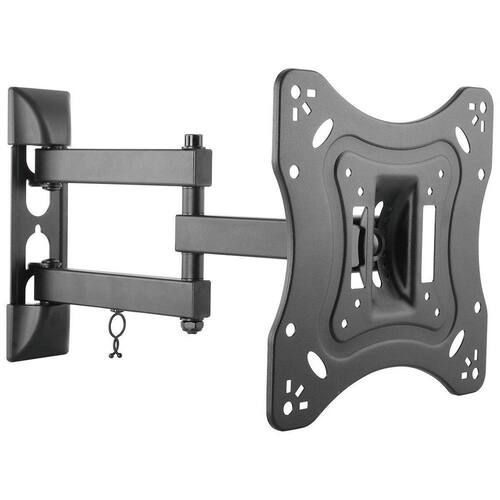 Material: aço Cor: preto Pintura: preto textura fina Comprimento / altura - 244x392mm Tamanho do tubo: 30x20mm Distância minima x máxima da parede - 82 ~ 392mm Tamanho suportado: compatível com televisores e monitores 23-42 Padrão de fixação: vesa: 75x75,100x100,200x100,200x200mm Peso do produto: 0.73 kg Giro de até 90° Parafusos e manual incluídos;