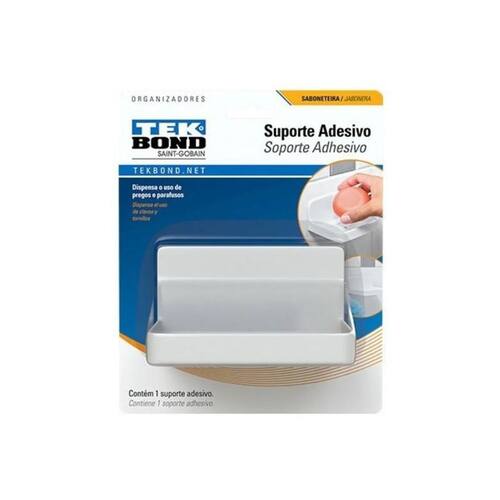 Suporte Ultraresistente De Banheiro Para Sabonete Tekbond A linha de ganchos e organizadores adesivos da Tekbond oferece uma solução prática e resistente que permite decorar e organizar a sua casa ou o seu ambiente de trabalho. Marca: Tekbond Part number: 20811000202 Modo de Usar: 1- Limpe a superfície com álcool, removendo qualquer resquício de oleosidade ou poeira. Importante: O uso de detergentes ou outros produtos pode comprometer o desempenho da fita adesiva. 2- Remova o liner protetor da fita e aplique o produto no local desejado. 3- Faça pressão na peça por 30 segundos com certa força para potencializar a resistência da fita. 4- Aguarde 1 hora antes de utilizar o gancho. Importante: 1- Quanto maior a área de contato da fita, mais resistente é a aplicação. Por este motivo, não aplique os ganchos em superfícies irregulares, curvas ou com texturas. 2- As fitas não foram projetadas para suportar objetos tridimensionais de grande volume como, por exemplo, prateleiras. Não recomenda-se a aplicação de ganchos e fitas para objetos que fazem a pressão em forma de pêndulo. 3- Verifique a superfície onde será aplicada a fita / suporte. No momento da remoção, o adesivo da fita pode danificar superfícies com pintura ou reboco mal fixados e sem resistência. Para remover a FITA PERMANENTE: 1. Passe um fio de Nylon ou similar entre a parede e o produto para soltar a fita adesiva. 2. Durante este processo, algum resíduo de fita pode ficar na parede. Utilize uma esponjinha com água e sabão para a limpeza da área. Nota: Uma vez removidas, as fitas não são reaproveitáveis. Suporte para Sabonete: - Cor: branca - Capacidade: 1 sabonete - Unidades: 1 Ean: 7898543382973