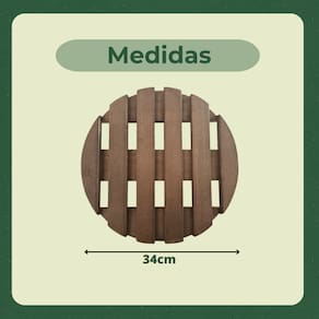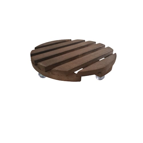Suporte redondo para vasos ou ao seu gosto, fabricado em madeira de Eucalipto proveniente de reflorestamento com rodízios/rodinhas de polipropileno. O suporte pode ser utilizado em ambientes internos ou externos.