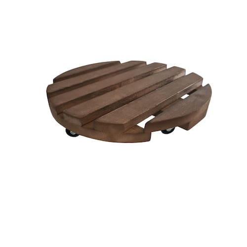 Suporte redondo para vasos ou ao seu gosto, fabricado em madeira de Eucalipto proveniente de reflorestamento com rodízios/rodinhas de polipropileno. O suporte pode ser utilizado em ambientes internos ou externos.