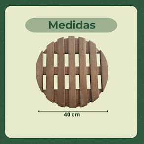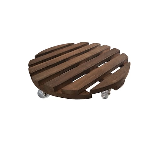 Suporte redondo para vasos ou ao seu gosto, fabricado em madeira de Eucalipto proveniente de reflorestamento com rodízios/rodinhas de gel. O suporte pode ser utilizado em ambientes internos ou externos.