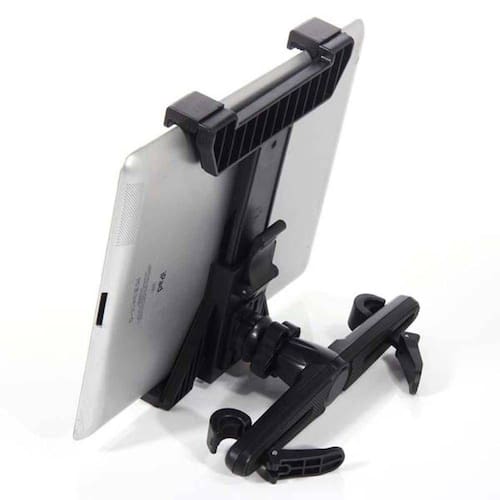 Suporte veicular para tablet com encaixe no apoio de cabeça ideal para entretenimento do passageiro sentado no banco de trás.