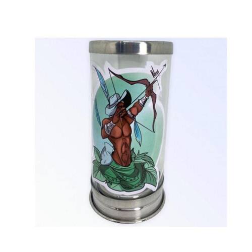 Suporte Vela 7 Dias Orixás 18cm Vidro Alumínio-Escolha a Cor Cor: Oxóssi Suporte Vela 7 Dias Orixás 18cm Vidro Alumínio-Escolha a Cor