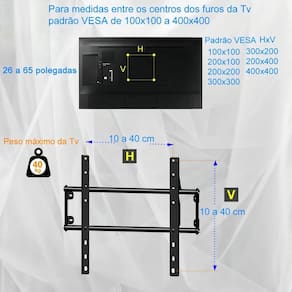 Suporte parede fixo O suporte para tv de parede fixo é um produto projetado para fixação de televisores, monitores. Ele é fabricado com material resistente e durável, como metal de alta qualidade, que garante a segurança dos equipamentos fixados. O suporte possui um design compacto e discreto, que permite que o equipamento fique rente à parede, economizando espaço e dando um aspecto organizado e elegante ao ambiente. Além disso, ele é fácil de instalar e acompanha todo o kit de montagem necessário, como parafusos e buchas. O suporte parede fixo é uma excelente opção para quem busca praticidade e segurança na hora de fixar seus equipamentos eletrônicos na parede, seja em casa, no escritório ou em espaços públicos. Com ele, é possível aproveitar melhor o espaço disponível e criar uma atmosfera mais moderna e organizada em qualquer ambiente. Ficha técnica - Modelo - suporte parede fixo para tv lg, samsung, sony, philco, multilaser, tcl, philips neo led 8k para telas de 26 a 65 polegadas padrão vesa 100x100 até 400x400 peso da tv até 40kg Compatibilidade - televisores, monitores, projetores e outros equipamentos eletrônicos com padrão vesa 100x100 até 400x400 Tamanho mínimo da tela - 26 polegadas Tamanho máximo da tela - 65 polegadas Lugares de montagem - suporte de parede fixo Acompanha parafusos de fixação do suporte na tv, as medidas dos parafusos como o comprimento e diâmetro são para as tvs mais comuns do mercado, podendo não servir para determinadas tvs. Parafusos que acompanham 4pçs m4x10 4pçs m6x16 4pçs m8x11-13 tv samsung 4pçs m8x20-22 samsung usar arruelas se necessário 4 buchas s8 4 parafusos chipboart para bucha ou mdf O suporte permite a passagem de cabos e o plug de conectores de hdmi - super resistente - encaixe rápido e seguro - não necessita de travamentos auxiliares - suporta até 40kg Marca: Não Informado