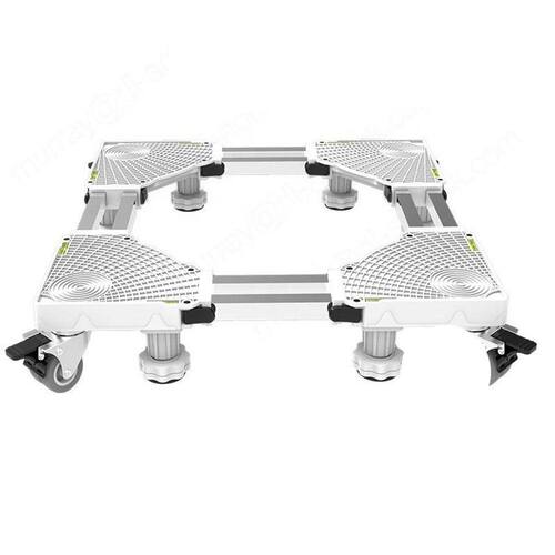 Suporte multiuso reforçado - Fácil montagem em 4 módulos.- Possui 8 pés com regulagem de altura e 4 rodas duplas com travas, produzidas em PVC.- Ajuste de largura fácil, sem uso de parafusos - Nível de bolha para nivelamento.- Ferragens duplas, reforçadas.- Alta capacidade de carga.- Facilidade na movimentação.- Dimensões: Altura:11-13 cm Largura dos lados:45-75 cm e 45-75 cm- Capacidade de carga:800 kg- Material: Polipropileno e tubo de aço inoxidável- Peso:4 kg- Cor: branco- Ideal para elevar máquina de lavar, geladeira, freezer, tanquinho, secadora ou objetos pesados. Maior praticidade para remoção e limpeza em áreas de serviço, cozinhas, varandas, entre outros locais. Livre seu eletrodoméstico da umidade que corroe e reduz a vida útil do seu equipamento. Marca: Aj Som Acessórios Musicais