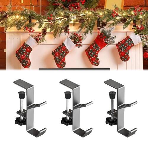 Suportes de meia para manto, ganchos de manto para guirlanda, gancho duplo Stocking Garland Mantle, cabides de guirlanda de lareira pesados para moldura de porta, guirlanda ajustável de Natal e cabides de meia