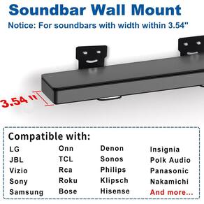 Material: metal Cor: preto Tamanho da embalagem: 15 x 10 x 5 cm Peso da embalagem: 0,3 kg Lista de embalagem: 2 suportes de montagem na parede do Soundbar, 4 parafusos, 2 âncoras Esses suportes universais de montagem na parede da barra de som oferecem uma maneira segura e confiável de montar sua barra de som na parede, tornando-os ideais para home theaters, salas de estar ou espaços de entretenimento. Feitos de metal durável, esses suportes fornecem excelente suporte para seu sistema de áudio, garantindo que a barra de som permaneça montada com segurança, evitando que ela caia ou se desloque com o tempo. O design antiderrapante adiciona estabilidade extra, mantendo a barra de som no lugar e minimizando o risco de danos causados por choques ou pancadas acidentais, especialmente em áreas de tráfego intenso. Fáceis de instalar e ajustáveis, esses suportes são projetados para caber na maioria das barras de som. O tamanho compacto é perfeito para espaços menores, garantindo que sua barra de som permaneça segura e tenha uma aparência elegante. Esses suportes são perfeitos para quem deseja organizar sua área de estar montando a barra de som na parede, mantendo o espaço limpo e livre de bagunça desnecessária, ao mesmo tempo em que aprimora a estética geral.