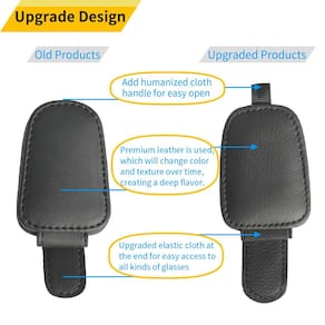 Yuoyar Pacote com 2 suportes de óculos de sol para viseira de carro - Suporte magnético de couro para óculos de sol e clipe para cartão de bilhete - Acessórios para viseira de carro (preto) - Ajuste universal: Nosso pacote inclui dois suportes de óculos de sol para carros que se encaixam em quase todos os modelos de carros. Basta prender o suporte na sua viseira e pronto. - Fácil de usar: nosso design especial de alça de tecido facilita a abertura da aba magnética com apenas uma mão. Você pode colocar seus óculos de sol no suporte de forma rápida e fácil e retirá-los quando precisar. - Envoltório completo de couro: O suporte de óculos de sol para viseira de carro é feito de couro de alta qualidade, com uma textura macia que envolve totalmente o clipe, garantindo que sua viseira e óculos permaneçam intactos. - Tecido elástico atualizado: atualizamos o tecido elástico na extremidade do suporte para fornecer acesso fácil a todos os tipos de óculos. O tecido elástico pode estabilizar seus óculos sem danificar as pernas. - Compre com confiança: Se você tiver alguma dúvida ou preocupação, sinta-se à vontade para entrar em contato conosco para obter assistência. Nossa equipe de atendimento ao cliente está disponível online a qualquer momento para fornecer a melhor solução. Esperamos que você aproveite nossos produtos e serviços.