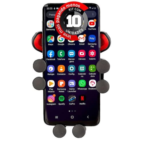Suportes Para Celular, Veicular - Retrátil - Kit Com 10 Suporte para celular com caráter universal, possui 6 pontos de ligação que se ajustam para acomodar dispositivo com medidas diferentes. O suporte abraça o aparelho, que fica firmemente encaixado e seguro. O celular fica posicionado no suporte, que deve ser encaixado na saída de ventilação do veículo através de uma pinça ou clipe antiderrapante. Basta prender na grade de ventilação e usar. Um suporte inteligente e ajustável que toma pouco espaço quando não está sendo utilizado. Funcionamento simples, se estende facilmente quando acionado pelo dispositivo móvel e se retrai automaticamente quando o aparelho é retirado. Compatível com smartphones com medidas entre 4,7 e 6,5 polegadas . Algumas versões possíveis: iPhone Xs Max / XR / XS / X / 8/7 / 6s / 6/8 Plus / 7 Plus / 6s Plus / 6 Plus, S10 / S10 Plus / S10e / S9 / S8 / S7 / S6, LG, One Plus 7.