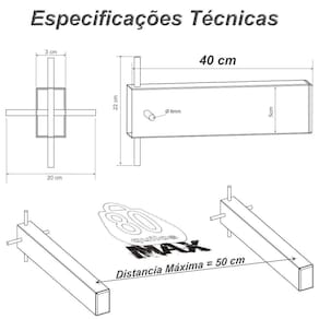 Suportes 02 unidades para chumbar, braço 40 cm, fixado por exclusivo sistema de travamento, para pia; bancada; prateleiras e o que mais imaginar... - este modelo tem reforço de travas para chumbamento, fortalecendo a ação do concreto na fixação do suporte. - fabricado com aço carbono e pintura epóxi, que aumenta a vida útil do produto -quando instalado em par ou mais e distribuído em espaços iguais ou inferiores a 50 cm, suporta até 80 kgs/par - funciona como aparador para pias, bancadas, prateleiras e sua imaginação é o limite. - o objetivo da instalação deste suporte é fortalecer a instalação, fixando através de concreto/alvenaria - a melhor distribuição do peso, facilita a instalação, protegendo o gabinete e facilitando a movimentação, quando necessária Dados do produto: - base de travas em forma de cruz, inserida na alvenaria/concreto - braço 50x30x0,9mm: 40 cm - sistema de fixação: concreto/alvenaria - incluso ponteira em pvc para acabamento, podendo ser removida para eventual ajuste de medida Produzido por: multiforma industrial, mais de 25 anos de experiencia em suportes e aparadores Observações: - local de instalação: alvenaria. Blocos cerâmicos ou blocos de concreto, não devendo ser usada em paredes com alvenaria fraca ou arenosa.