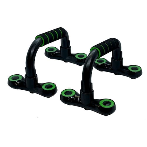 Se flexões são um exercício muito difícil para você, nossos suportes para flexões de braços e braços são a solução. ?Seu design ergonômico proporcionará o máximo conforto em todas as suas rotinas; tonifique suas costas, tronco, braços, ombros e peito com nosso produto. ?Os suportes possuem alças antiderrapantes, base resistente e inclinação angular, evitando assim pressões desnecessárias nos pulsos ao realizar os exercícios. TAMANHO (equipado com o produto): 23,8x13,5 x 15,5 cm. QUANTIDADE: 2 und. PESO: 25 gr (c/u). MATERIAL: plástico e borracha COR: Preto (com detalhes em verde)