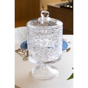 Com 4,5 litros, ela é ideal para sucos, águas aromatizadas, chás gelados e drinks. Produzida em cristal ecológico, destaca-se pelo brilho, resistência e design redondo com detalhes delicados que valorizam mesas de café da manhã, festas e recepções.