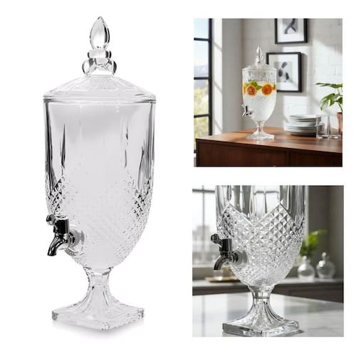 Suqueira de vidro transparente 5l Elegância e praticidade para suas bebidas Transforme qualquer ocasião em um momento especial com nossa suqueira de vidro de alta qualidade o dispense pode ser para decorar composições de casamento, aniversários, ções empresariais e também de eventos informais como reuniões de família ou até para decorar sua cozinha com muito estilo. Versátil, a peça pode ser Utilizado para servir diversas bebidas, como suco, água aromatizada ou até mesmo drinks alcóolicos. Especificações técnicas: - peso: 5,3 kg - dimensões: altura: 52 cm / diâmetro: 20 cm / base: 12 cm - cor: transparente - material: vidro, torneira de plástico e borracha de silicone. - capacidade: 5 litros : Oferecemos de fábrica de 3 meses. A não cobre danos ocasionados por uso indevido. Conteúdo da embalagem: 01- suqueira de vidro 01 - tampa de vidro 01- torneira de plástico na cor cromada do vendedor: 3 meses Marca: Não Informado Ean: 7795099029102