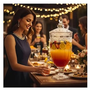 Suqueira de vidro transparente 5 litros Elegância e praticidade para suas bebidas Transforme qualquer ocasião em um momento especial com nossa suqueira de vidro de alta qualidade o dispense pode ser para decorar composições de casamento, aniversários, ções empresariais e também de eventos informais como reuniões de família ou até para decorar sua cozinha com muito estilo. Versátil, a peça pode ser Utilizado para servir diversas bebidas, como suco, água aromatizada ou até mesmo drinks alcóolicos. Especificações técnicas: - peso: 5,1 kg - dimensões: altura: 52 cm / diâmetro: 19 cm / base: 12 cm - cor: transparente - material: vidro, torneira de plástico e borracha de silicone. - capacidade: 5 litros : Oferecemos de fábrica de 3 meses. A não cobre danos ocasionados por uso indevido. Conteúdo da embalagem: 01- suqueira de vidro 01 - tampa de vidro 01- torneira de plástico na cor cromada do vendedor: 3 meses