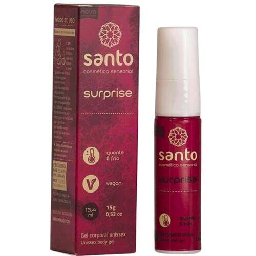 surprise gel esquenta e esfria tem uma fórmula especial e propriedade , que causa uma agradável sensação esfria e esquenta. Modo de usar: aplicar em movimentos suaves de massagem até a completa absorção pela pele. Precauções: evite o contato com os olhos, caso ocorra, lave com água em abundância. Manter fora do alcance das crianças. Havendo irritação suspenda o uso. Composição: carbomer, disodium edta, propylene glycol, glycerin methylparaben, cellulose gum, sorbitol, dimethicone, parfum. Quantidade: 15g