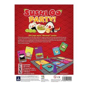 Em "Sushi Go Party!", os jogadores competem para montar a melhor combinação de pratos de sushi em um banquete. Com uma variedade maior de cartas e possibilidades de estratégia em comparação ao jogo original, essa edição traz novas opções que aumentam a rejogabilidade. O jogo inclui diversas cartas de makis, nigiris, sashimis e muito mais, cada uma com diferentes pontuações e habilidades, incentivando os jogadores a planejar bem cada rodada para obter a melhor pontuação.