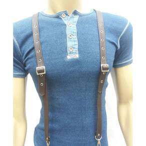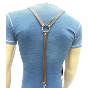 Suspensório de couro ajustável através de fivelas. A regulagem de tamanho e feita por ilhoses. As tiras são presas em uma argola nas costas, sendo duas na frente e uma atrás, com mosquetões nos passantes da calça. Este produto é indicado para ser com calça jeans. Especificações: Cor: Marrom Ocasião: Casual Materiais: couro bovino 100% Fivelas: zamak Rebites e ilhoses: ferro Mosquetões: zamak Argola: ferro Medidas: Tiras com cerca de 20 mm de largura 1,20m de comprimento máximo, ajustável a partir de 0,98m Fivelas: 20mm Argola: 32mm Cuidados: Por se tratar de couro o produto não pode ser lavado. A limpeza deve ser feita com pano umedecido em sabão neutro ou vinagre. Também pode ser óleo hidratante para manter o brilho e maciez. : Efetuamos a troca em 7 dias no caso de defeito de fabricação. Produto com a qualidade do ateliê Blood Art Marca: Não Informado