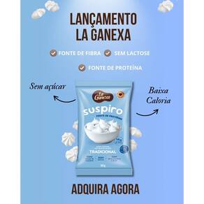 Suspiro proteico sabor tradicional 30g/un - la ganexa baixo em caloriafonte de proteínasem açúcar o clássico que você ama, agora muito mais leve e saudável baixo em caloria fonte de proteína sem açúcar é a opção perfeita para quem busca um doce sem culpa. Além disso, é rico em fibras e proteínas, garantindo mais e equilíbrio para o seu dia. descrição suspiro tradicional O clássico que você ama, agora zero açúcar, zero lactose, com fibras e proteínas leve, crocante e com baixa caloria, perfeito para um doce sem culpa. O sabor tradicional do suspiro, mas muito mais saudável baixo em caloria fonte de proteína sem açúcar Ingredientes e alérgicos: Ingredientes: polidextrose, clara de ovo em pó, isomalto-oligossacarídeo de mandioca em pó, sal rosa fino iodado, aromatizante e edulcorante sucralose. Alérgicos: contém derivados de ovo. Pode conter leite, pistache e soja. Não contém lactose. Não contém glúten. Marca: Não Informado