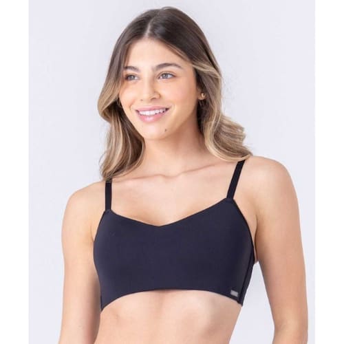 Sutiã com bojo inteiro em microfibra, com laterais largas, sem aro - Preto - 42