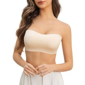 LAJERIN Sutiã sem alças para mulheres, sutiã nude, push up, top tubinho bandeau, plus size, sem fio, antiderrapante, acolchoado, Nude-11, M