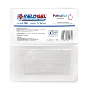 Sutura cutânea ponto kelogel strip 12mmx100mm 18un Tamanho: 12mmx100mm Kelogel strip - sutura cutanêa adesiva Composição do produto: Curativo estéril com filamentos poroso de poliéster Descrição de produto: O fechamento de pele com kelogel strip perfectseal é indicado como de outros métodos de fechamento no tratamento de lacerações e incisões cirúrgicas. Também podem ser conjuntamente com suturas a linha e grampos, ou após a remoção deles, para maior sustentação. Indicado como de outros métodos de fechamento no tratamento de lacerações cutâneas e incisões cirúrgicas. Também podem ser conjuntamente com suturas a linha e grampos, ou após a remoção deles, para maior sustentação. São fabricadas de não tecido poroso, com filamentos para reforço de sua estrutura e com adesivo hipoalergênico. Instruções de uso: 1. Limpar e secar a pele. 2. Abrir a embalagem e retirar a cartela totalmente. 3. Segurar a extremidade da tira e levante-a da cartela. 4. Ao usar a tira para suturar a pele, sem pontos ou grampos, juntar as bordas da pele com os dedos ou pinças. Colocar as tiras de um lado ao outro do ferimento, de forma a assegurar uma aplicação sem tensão. 5. Em ferimentos maiores, posicionar de forma a distribuir a tensão. Colocar as tiras com aproximadamente 3mm a 5mm de espaço entre elas. 6. Podem-se colocar tiras adicionais paralelas a ferida e aproximadamente a 10mm das extremidades das fitas. Isto pode reduzir a força de cisalhamento a que a ferida está submetida. Instruções de uso: Todos os produtos adesivos aplicados sobre a pele, uma pequena porcentagem da população pode apresentar irritação na pele ou injúria durante o uso ou na remoção. Não aplicar as tiras adesivas sob tensão, pele que sofreu danos com bolhas e falta de adesão podem ocorrer se for verificado tensão excessiva. O uso com outros produtos adesivos pode causar bolha e injúria na pele. Advertência: Para reduzir o risco de infecção não reutilize as tiras e descarte as tiras não utilizadas. Na ocorrência de alguma reação e/ou alteração na pele, descontinue o uso e observe. Caso persista algum sinal/sintoma, consulte um de saúde. Nos casos em que haja o acompanhamento de um de saúde, siga a orientação previamente fornecida Bolsa: Contém: 3 bolsa 6 tiras por bolsa Tamanho: 12mm x 100mm registro anvisa 81926099008 Marca: Não Informado