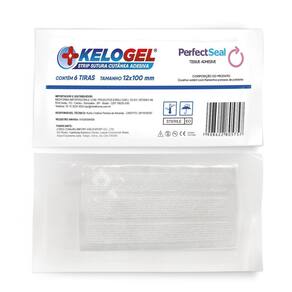 Sutura cutânea ponto kelogel strip 12mmx100mm 18un Tamanho: 12mmx100mm Kelogel strip - sutura cutanêa adesiva Composição do produto: Curativo estéril com filamentos poroso de poliéster Descrição de produto: O fechamento de pele com kelogel strip perfectseal é indicado como de outros métodos de fechamento no tratamento de lacerações e incisões cirúrgicas. Também podem ser conjuntamente com suturas a linha e grampos, ou após a remoção deles, para maior sustentação. Indicado como de outros métodos de fechamento no tratamento de lacerações cutâneas e incisões cirúrgicas. Também podem ser conjuntamente com suturas a linha e grampos, ou após a remoção deles, para maior sustentação. São fabricadas de não tecido poroso, com filamentos para reforço de sua estrutura e com adesivo hipoalergênico. Instruções de uso: 1. Limpar e secar a pele. 2. Abrir a embalagem e retirar a cartela totalmente. 3. Segurar a extremidade da tira e levante-a da cartela. 4. Ao usar a tira para suturar a pele, sem pontos ou grampos, juntar as bordas da pele com os dedos ou pinças. Colocar as tiras de um lado ao outro do ferimento, de forma a assegurar uma aplicação sem tensão. 5. Em ferimentos maiores, posicionar de forma a distribuir a tensão. Colocar as tiras com aproximadamente 3mm a 5mm de espaço entre elas. 6. Podem-se colocar tiras adicionais paralelas a ferida e aproximadamente a 10mm das extremidades das fitas. Isto pode reduzir a força de cisalhamento a que a ferida está submetida. Instruções de uso: Todos os produtos adesivos aplicados sobre a pele, uma pequena porcentagem da população pode apresentar irritação na pele ou injúria durante o uso ou na remoção. Não aplicar as tiras adesivas sob tensão, pele que sofreu danos com bolhas e falta de adesão podem ocorrer se for verificado tensão excessiva. O uso com outros produtos adesivos pode causar bolha e injúria na pele. Advertência: Para reduzir o risco de infecção não reutilize as tiras e descarte as tiras não utilizadas. Na ocorrência de alguma reação e/ou alteração na pele, descontinue o uso e observe. Caso persista algum sinal/sintoma, consulte um de saúde. Nos casos em que haja o acompanhamento de um de saúde, siga a orientação previamente fornecida Bolsa: Contém: 3 bolsa 6 tiras por bolsa Tamanho: 12mm x 100mm registro anvisa 81926099008 Marca: Não Informado
