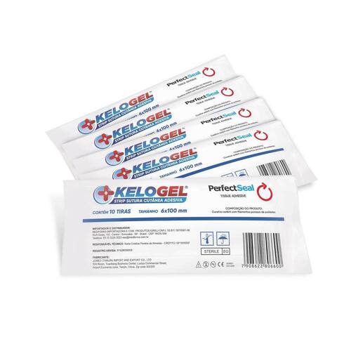 Sutura cutânea ponto kelogel strip 6mmx100mm 50un Tamanho: 6mmx100mm Kelogel strip - sutura cutanêa adesiva Composição do produto: Curativo estéril com filamentos poroso de poliéster Descrição de produto: O fechamento de pele com kelogel strip perfectseal é indicado como de outros métodos de fechamento no tratamento de lacerações e incisões cirúrgicas. Também podem ser conjuntamente com suturas a linha e grampos, ou após a remoção deles, para maior sustentação. Indicado como de outros métodos de fechamento no tratamento de lacerações cutâneas e incisões cirúrgicas. Também podem ser conjuntamente com suturas a linha e grampos, ou após a remoção deles, para maior sustentação. São fabricadas de não tecido poroso, com filamentos para reforço de sua estrutura e com adesivo hipoalergênico. Instruções de uso: 1. Limpar e secar a pele. 2. Abrir a embalagem e retirar a cartela totalmente. 3. Segurar a extremidade da tira e levante-a da cartela. 4. Ao usar a tira para suturar a pele, sem pontos ou grampos, juntar as bordas da pele com os dedos ou pinças. Colocar as tiras de um lado ao outro do ferimento, de forma a assegurar uma aplicação sem tensão. 5. Em ferimentos maiores, posicionar de forma a distribuir a tensão. Colocar as tiras com aproximadamente 3mm a 5mm de espaço entre elas. 6. Podem-se colocar tiras adicionais paralelas a ferida e aproximadamente a 10mm das extremidades das fitas. Isto pode reduzir a força de cisalhamento a que a ferida está submetida. Instruções de uso: Todos os produtos adesivos aplicados sobre a pele, uma pequena porcentagem da população pode apresentar irritação na pele ou injúria durante o uso ou na remoção. Não aplicar as tiras adesivas sob tensão, pele que sofreu danos com bolhas e falta de adesão podem ocorrer se for verificado tensão excessiva. O uso com outros produtos adesivos pode causar bolha e injúria na pele. Advertência: Para reduzir o risco de infecção não reutilize as tiras e descarte as tiras não utilizadas. Na ocorrência de alguma reação e/ou alteração na pele, descontinue o uso e observe. Caso persista algum sinal/sintoma, consulte um de saúde. Nos casos em que haja o acompanhamento de um de saúde, siga a orientação previamente fornecida Bolsa: Contém: 5 bolsa 10 tiras por bolsa Tamanho: 6mm x 100mm registro anvisa 81926099008 Marca: Não Informado