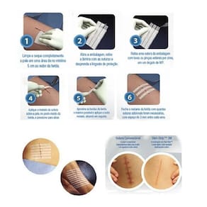 - O Steri-Strip é um curativo estéril de Micropore com filamentos de poliéster, que promove o fechamento de pele de maneira fácil e rápida; - Sensível a pressão, apresenta boa adesão inicial, proporcionando grande economia de tempo em relação às suturas convencionais; - Por ser um fechamento não invasivo, reduz a chance de trauma no tecido e a conseqüente formação de edema cutâneo; - Proporciona uma cicatrização mais rápida e diminui os riscos de infecções causadas por suturas invasivas; - Suturas cutâneas embaladas individualmente; - Alta adesividade; - Permite adequada transpiração da pele; - Suturas de pele adesivas, estéreis; - Dorso de rayon de Viscose não tecido; - Reforçado por tiras de poliéster; - Adesivo acrílico hipoalergênico; - Livre de látex.