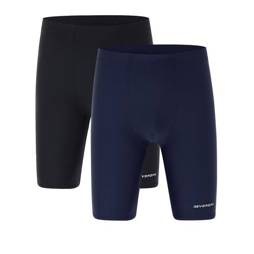 DEVOROPA Bermuda de natação juvenil para meninos competitiva roupa de natação esportiva secagem rápida shorts de natação FPS 50+, Pacote com 2 - preto/azul marinho - Tecido de secagem rápida: Breatbale, tecido de secagem rápida oferece aos seus filhos um uso fresco e confortável. Consulte a tabela de tamanhos na última imagem para o tamanho correto - Ajuste ajustável: cordão ajustável embutido na cintura mantém o maiô do seu menino no lugar - Conforto para natação: Design de construção de costuras flatlock para o jammer de natação infantil para reduzir a irritação do atrito - Proteção solar: FPS 50+ protege sua pele dos raios UVA/UVB nocivos do sol - Ocasiões: o short de natação para meninos é um maiô de qualidade para seus filhos; o design de costuras leves e flatlock está melhorando a velocidade de natação de seus filhos na água; os shorts de natação são perfeitos para prática de equipe de natação, competição de natação, aulas de natação, treinamento, aprender a nadar e todos os tipos de atividades aquáticas ao redor da piscina ou praia