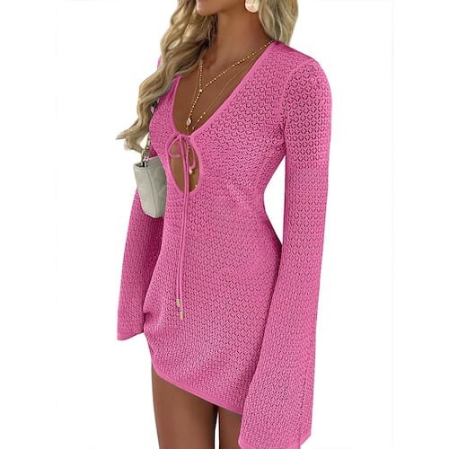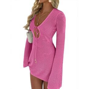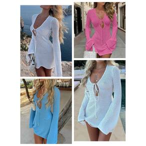 - Características: saída de praia feminina de crochê, mangas compridas, laço frontal, vazado, malha. Este maiô feminino é perfeito para praia, férias, uso diário.