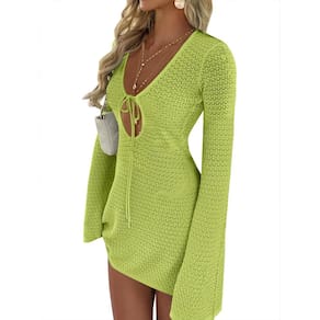 - Características: saída de praia feminina de crochê, mangas compridas, laço frontal, vazado, malha. Este maiô feminino é perfeito para praia, férias, uso diário.